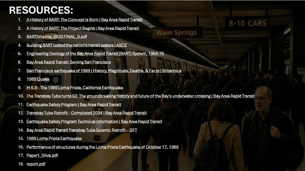 EARTHQUAKE RESILIENCE OF BAY AREA RAPID TRANSIT (BART)